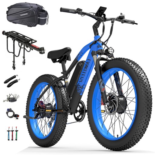 - LANKELEISI MG740 PLUS Позашляховий електровелосипед із подвійним двигуном, переднім і заднім колесами.