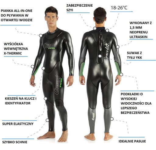 ✅ Костюм для фрідайвінгу Cressi Sub Triton - це костюм з неопрену ULTRASKIN товщиною 1,5 мм для плавання у відкритих водоймах для фрідайверів, триатлоністів та підводних мисливців.