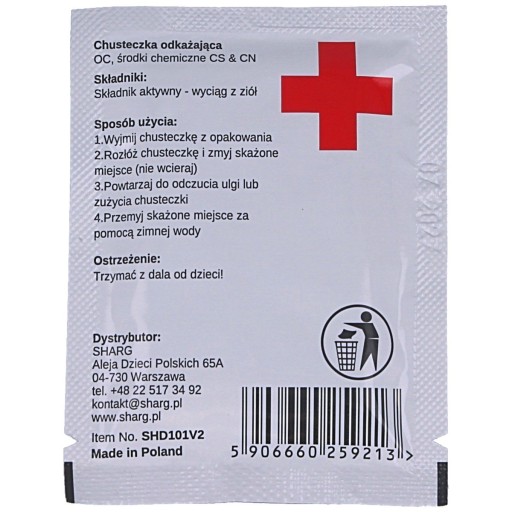 Серветка для дезактивації використовується для нейтралізації дії перцевого балончика OC, сльозогінного газу CS, CN та інших подразників.