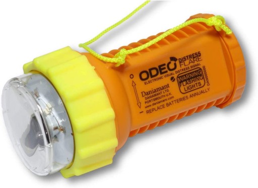 Морська сигнальна сигналізація Odeo Distress є альтернативою традиційним піротехнічним сигнальним сигналам для човнів, пропонуючи безпечніший і ефективніший сигнал лиха. Завдяки LED-технології він світиться близько 8 годин при повному освітленні. Оскільки пристрій використовує стандартне живлення від акумулятора, він абсолютно безпечний у вимкненому стані, а також добре підходить для перенесення на борт літака.