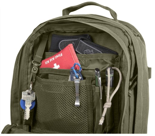 Спереду і з боків оброблені стрічками стандарту системи MOLLE/PALS, що дозволяє кріпити додаткові елементи спорядження, наприклад, сумки або сумки.