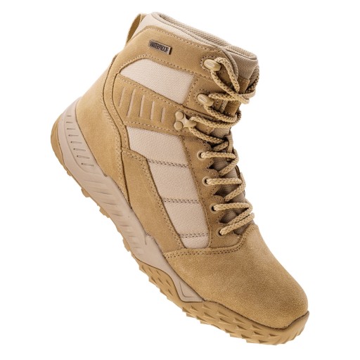 Військові черевики Magnum Motru Mid WP складаються із 60% замші та 40% текстилю. Мають водонепроникну мембрану і м'яку вставку з MESH і пінополіуретану.