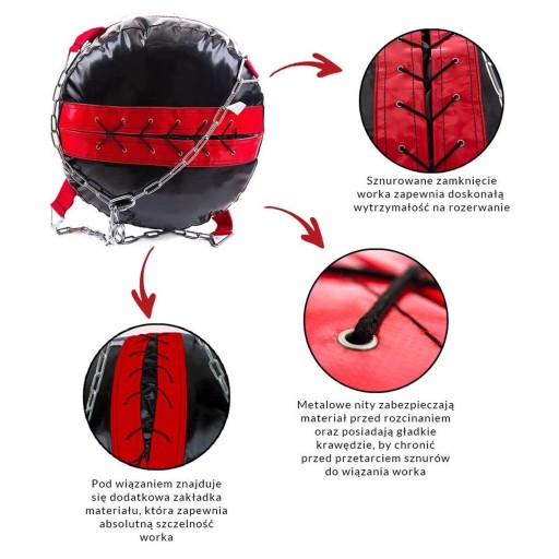 Пояс, що оточує сумку - це бездоганна форма вдосконалення та посилення лямок, що утримують ланцюги сумки. Крім того, він маскує місце вшивання ланцюгів в сумку, збільшуючи зону тренувань і виключаючи травми і потертості шкіри.