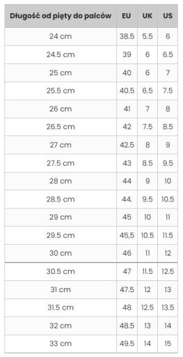 Покладіть аркуш паперу на підлогу одним краєм до стіни. Встаньте на папір п’ятою до стіни. Позначте олівцем, де закінчуються ваші пальці. Виміряйте відстань між стіною та місцем, яке ви позначили на папері, а потім порівняйте цю довжину з довжиною в нашій таблиці розмірів.