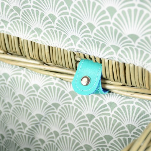 Кошик оснащений пряжкою із застібкою та зручними ручками для зручного транспортування. Всередині кошик обшитий красивим матеріалом, який забезпечує герметичність і покращує естетичність.