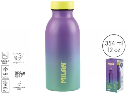 - Він також запобігає утворенню конденсату на зовнішній поверхні, тому пляшка не «потіє» у руці чи сумці та завжди залишається кімнатної температури.