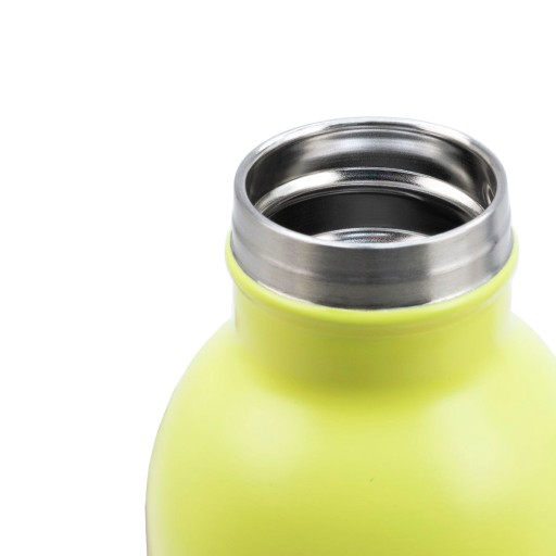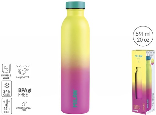 - Він також запобігає утворенню конденсату на зовнішній поверхні, тому пляшка не «потіє» у руці чи сумці та завжди залишається кімнатної температури.