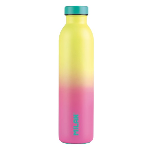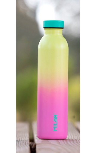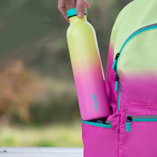 Термопляшка з колекції SUNSET велика жовто-рожева з зеленою кришкою.