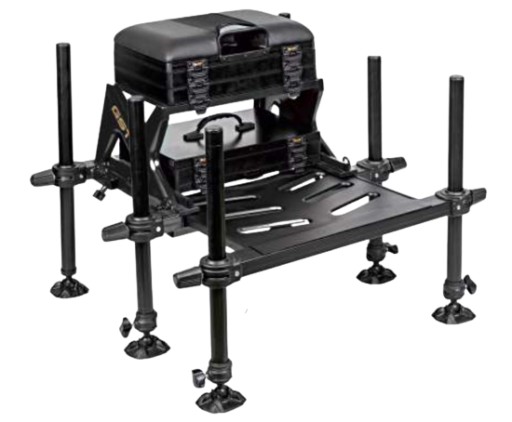 Кошики GST Pro є флагманським продуктом нашої компанії. Сидіння використовує оптимальні технічні рішення для комфорту рибалки. Має дуже міцні щиколотки, міцну ажурну платформу, зручну подушку з стрижневим задником і стійкі ніжки діаметром 36 мм. У комплект входить шість ніжок, в тому числі чотири телескопічні. Ніжки закінчуються широкими шарнірними стопами. Кошик поставляється з касетою, яка висувається вперед. Під м'яким сидінням є два ящика для аксесуарів.