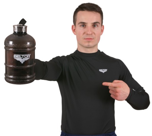Він створений для абсолютної зручності, щоб забезпечити споживання потрібної кількості рідини протягом дня та під час тренування. Пляшка має щільну кришку з нержавіючої сталі і ремінець з міцного нейлону, завдяки чому ви легко можете взяти її з собою куди завгодно. Ідеально підходить для тренажерних залів, тривалих походів або просто щоденного використання. Пляшка вміщує 1,89 літра води та виготовлена з найякіснішого, міцного нетоксичного пластику - не містить BPA.