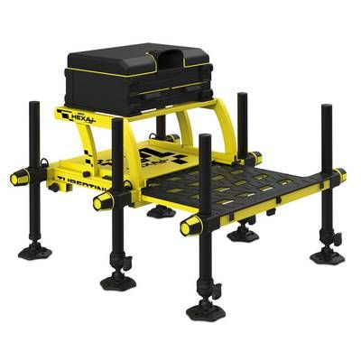 Продуктивний кошик із надлегкого алюмінію. Має шість ніжок діаметром 36 мм, чотири з яких телескопічні. Всі ніжки оснащені різьбовими втулками з заглушками, до яких можна прикручувати всілякі аксесуари з різьбою. Дуже міцна рама та ніжки D36 гарантують його стабільність та довговічність. Широкі шестикутні вушка виготовлені з міцної нержавіючої сталі. Вони ідеально лягають на будь-який тип основи. Вони не просідають у м'який ґрунт і не ковзають по бетону. Мають чотири отвори для шпильок, які додатково захищають кошик від ковзання. Модулі в кошиках HEXA виготовлені з дуже міцного, але легкого пластику, а нові розсувні петлі запобігають випадковому відкриванню касет. Підніжка покрита нековзним пластиком. Ергономічне сидіння з логотипом TUBERTINI розроблено таким чином, щоб забезпечити комфортне сидіння навіть протягом кількох годин. Ремінь для перенесення зроблено асиметрично, щоб збалансувати вагу кошика під час носіння. Кошики HEXA в базовій версії мають модуль з двома ящиками.