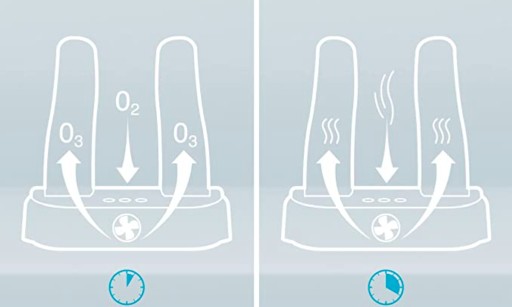 Сушка: Взуття сушиться. Цей процес відбувається зсередини, що набагато краще для взуття, ніж, наприклад, сушити його на радіаторі.