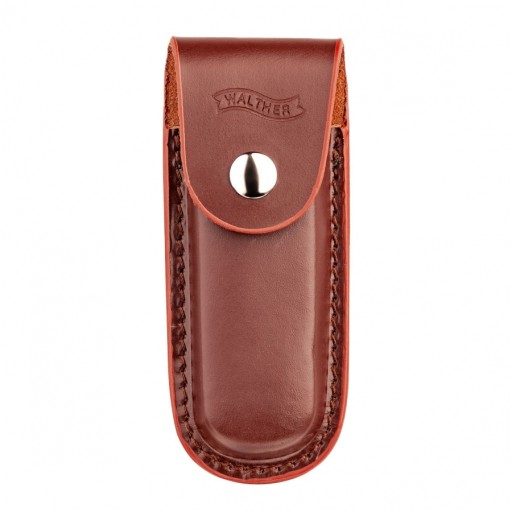 Walther BWK 7 — великий вуличний ніж із серії Blue Wood, оснащений розкладним лезом з нержавіючої сталі 440C, обшивкою з горіхового дерева, класичним замком для підкладки та шкіряною сумкою на поясі.