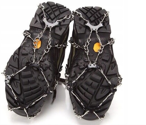 - Крампи (ланцюги) проти ковзання, оснащені 8 сталевими гачками (на кожному черевику).