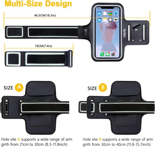 - Широка сумісність - ремінець Gritin підходить для 5,8-дюймових мобільних телефонів, таких як iPhone 12 Mini / iPhone SE 2020/11 Pro/XS/X/8/7/6 Plus. Вбудовані два регулювальних отвори для регулювання довжини, що підходить для більшості людей. Розмір A: 21-30 см [8,3-11,8 дюйма], розмір B: 30-40 см [11,8-15,4 дюйма]. Він також оснащений ремінцем-подовжувачем.