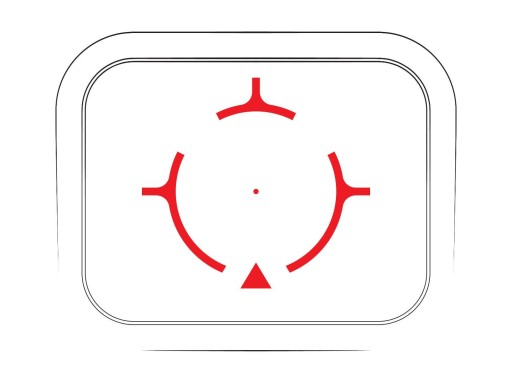 - Прицільна сітка EBR-CQB червоного кольору - призначена для стрільби на короткі (кільцевий трикутник) і великі дистанції (точка),