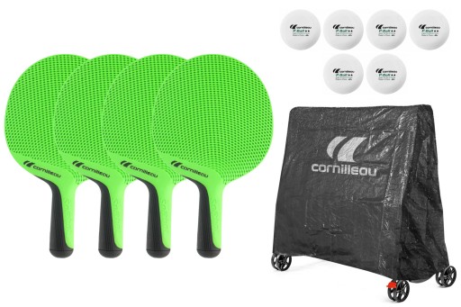 Покриття столу Cornilleau забезпечує захист від бруду, пилу, УФ-випромінювання, води та несприятливих погодних умов. Він легкий і виготовлений з міцного поліетилену. Він оснащений спеціальною системою ручок, які не дають йому зісковзнути зі столу навіть при сильному вітрі.