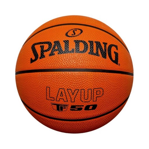 Баскетбольний м'яч Spalding LayUp TF-50 Indoor/Outdoor - призначений для любителів баскетболу для тренувань та розважальних ігор у тренажерному залі та відкритих кортах, наприклад, асфальт, бетон, орлик. Виготовлений з високоякісної гуми з хорошою стійкістю до стирання. Характерні канавки між панелями і шорстка поверхня покращують зчеплення.