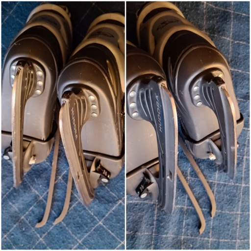 Розмір від 34 до 36, зручно регулюється без використання інструментів, розблокувавши важіль, розташований спереду, під черевиком, перемістивши частину черевика на потрібний розмір і знову зафіксувавши важіль (фото).