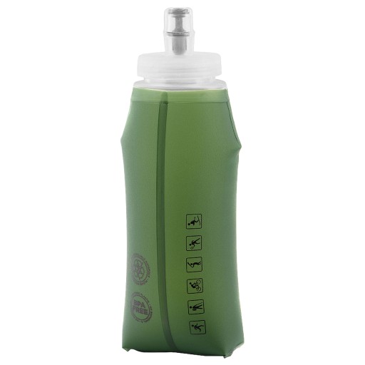 Пляшка виготовлена з ТПУ поліуретану, термопластичного матеріалу, дозволеного для використання в харчових продуктах. Цей міцний матеріал не вступає в реакцію з водою, а також безпечний для здоров'я. Ми можемо перевозити як холодні, так і гарячі напої в пляшці. Пляшка має широкий носик для зручного наповнення водою, гвинтову кришку з мундштуком, що замикається, і напівпрозорі стінки, які дозволяють перевіряти кількість рідини.