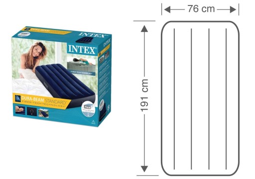 Матрац розміром 191 х 76 х 25 см підходить для однієї людини. Intex використовує тільки вінілові матеріали з посиленою структурою. Матрац додатково покритий м'яким оксамитом, тож навіть простирадло не знадобиться. Це високий комфорт за дуже розумні гроші від світового лідера з виробництва басейнів, понтонів, матраців та інших надувних аксесуарів.