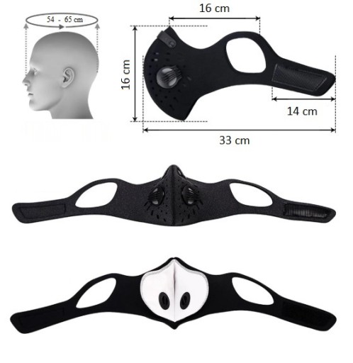 - Маска оснащена високоякісними багатошаровими фільтрами з системою фільтрації повітря ACTIVE CARBON AIR. Фільтр збагачений додаванням активованого вугілля, що підвищує ефективність захисного бар'єру та фільтруючого шару з розплаву.