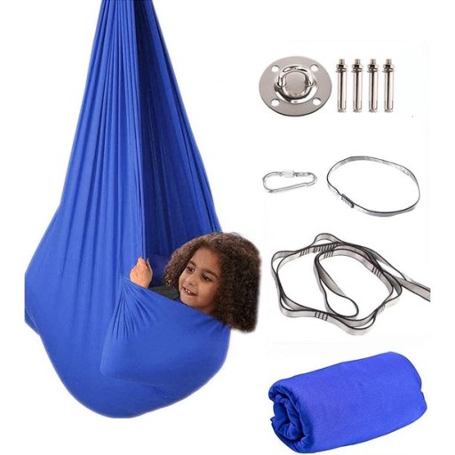 Легке коливання гойдалок і навколо власної осі забезпечує чудовий терапевтичний ефект, заспокоює емоції, знімає напругу в тілі та задовольняє потребу в сенсорних подразниках для дітей, які потребують терапевтичної підтримки (аутизм, синдром Аспергера, ADHD), заняття з повітряної йоги