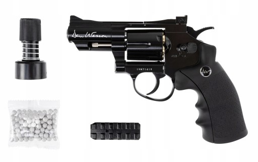 Важка, суцільнометалева, ліцензована копія револьвера Дена Вессона, що працює на газі CO2 від 12-грамового патрона, розміщеного в рукоятці, що забезпечує початкову швидкість випущеної кулі 394 кадри в секунду. Короткий ствол – атрибут спецслужб, для яких насамперед цінується приховане носіння зброї.