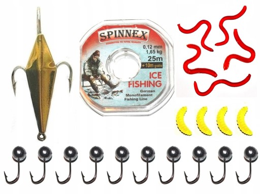 ЗОЛОТИЙ ШОК + ЛЕЗА СРІБНА М'ЯЧА - 10 ШТУК + ЖОВТА ЛИЧИНКА 2см. - 4 ШТ + ЧЕРВ'ЯКИ ЧЕРВОНІ 8см. - 5 ШТУК.
