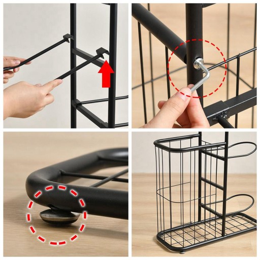 Матеріал: виготовлений із високоякісного залізного матеріалу, завдяки чому ця автономна стійка для зберігання м’ячів має міцну структуру та стійка до згинання, подряпин і вицвітання для тривалого терміну служби.