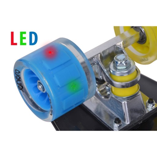 Невеликий розмір дозволяє легко зберігати та транспортувати скейтборд, куди б ви не пішли. Додатковою перевагою є світяться колеса, які підвищують видимість і безпеку.