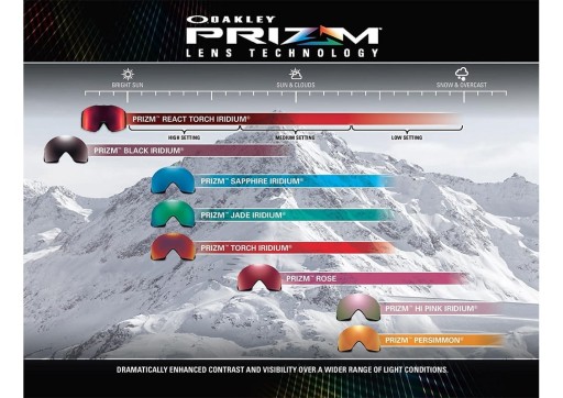 Найважливішою особливістю нових окулярів Oakley Prizm є підвищений контраст, який був спеціально адаптований до характеристик снігу. Завдяки цьому була вирішена одна з найбільших проблем, з якою стикаються любителі зимових видів спорту - видимість магнатів, ожеледиці та рельєфу. Крім того, лінзи за технологією Prizm ідеально підходять для широкого діапазону погодних умов, що робить окуляри з таким склом більш універсальними і не потребує заміни скла при зміні погоди.