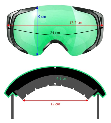 Професійні універсальні окуляри для лиж і сноуборду. Дзеркальні, циліндричні, мерехтливі лінзи будуть виділятися на схилі своїм модним виглядом. Лінза займає всю лицьову поверхню, повністю закриваючи оправу, створюючи чудовий і вражаючий візуальний ефект. Елегантний, регульований, вишитий 3D пояс - з об'ємною поверхнею. На корпусі ніжний оксамит, дуже приємний до тіла. Захисний чохол Super Soft Velvet з м'якої мікрофібри.