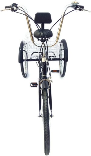 24-дюймовий 3-колісний чорний дорослий триколісний велосипед, 6-швидкісний велосипед для літніх людей з кошиком для покупок