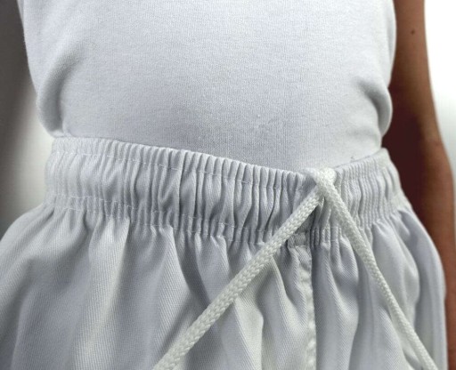 Штани-кімоно виготовлені з легкого матеріалу і оснащені еластичним поясом і додатковою зав'язкою, завдяки чому вони ідеально підійдуть під будь-яку фігуру і не сповзатимуть під час занять.