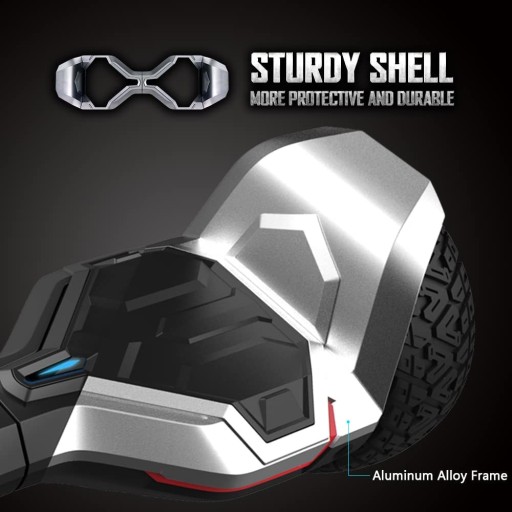 НАДІЙНИЙ КОРПУС ТА ШИНИ – Безпека є нашим головним пріоритетом, тому цей ховерборд для дітей і дорослих розроблено з дивовижними функціями безпеки, тож все, що ви робитимете, це розважатися, а не турбуватися про небезпеки та нещасні випадки. Акумулятор і корпус є вогнетривкими, а шина спеціально розроблена для пересіченої місцевості та бездоріжжя.