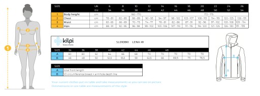Як і кожна куртка від Kilpi, модель LENA також має регульований капюшон, ширину манжета та низ.