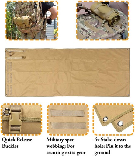 Міцний і чудовий водостійкість. Розроблено з водонепроникним покриттям, металевими люверсами, пряжкою, що швидко замикається, військовою стрічкою для кріплення обладнання.