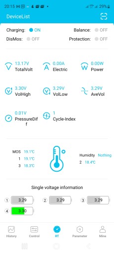 - Моніторинг стану заряду - поточний заряд акумулятора відображається на вбудованому LCD екрані (приблизні показання), а після завантаження програми також на мобільних пристроях через Bluetooth (точні показання) (Android, IOS).