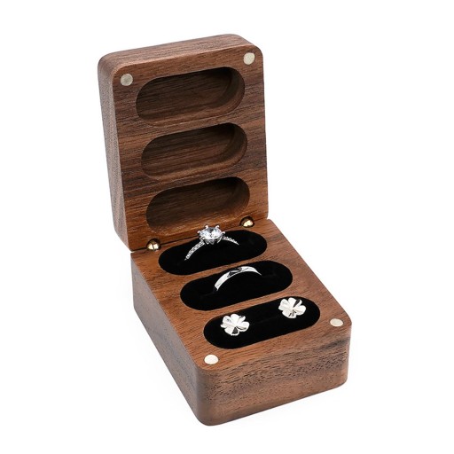 Дерев'яна шкатулка для ювелірних виробів Весільна церемонія Каблучка для каблучок Дорожня шкатулка Вітрина чорна