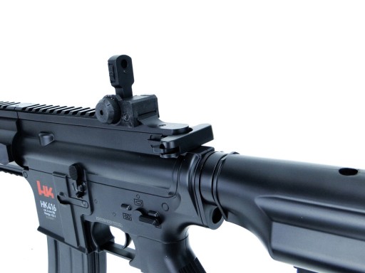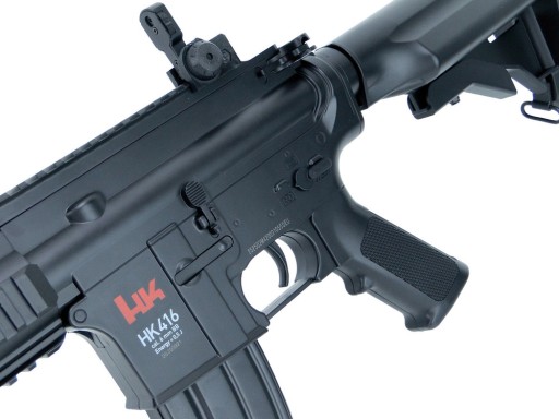 Що стосується вогнепальної зброї, то репліка H&K HK416 CQB 6 мм має R.I.S. і верхня планка Пікатінні, яка дозволяє використовувати додаткові аксесуари для зйомки, наприклад, вертикальну ручку, ліхтарик або коліматор. Карабін має відкидні прицільні пристосування, які після приєднання коліматора можуть використовуватися як запасні прицільні пристосування. Приклад із регульованою довжиною має нековзний затильник, що забезпечує надійну опору. На прикладі та цівці є гачки для ремнів.