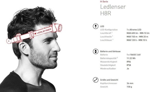 Ліхтарик LEDLENSER® H8R - це нова модель в серії налобних ліхтарів H.