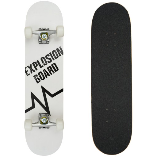 Молодіжний скейтборд MASTERExplosion Board - білий - чудовий вибір як для початківців, так і для досвідчених скейтбордистів. Міцна та міцна 9-шарова конструкція є легкою та ідеально підходить для навчання та розважальної їзди. Поліуретанові колеса з підшипниками ABEC7 забезпечують швидкість і плавність руху. Модний і молодіжний дизайн неодмінно задовольнить найвибагливіший смак.