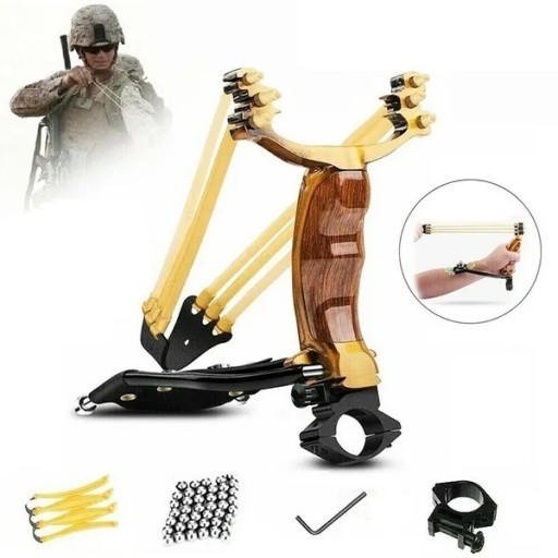 Наша професійна мисливська рогатка з широким луком і потрійними міцними гумками. Ергономічна, стабільно регульована рукоятка міцно та зручно лежить у руці.