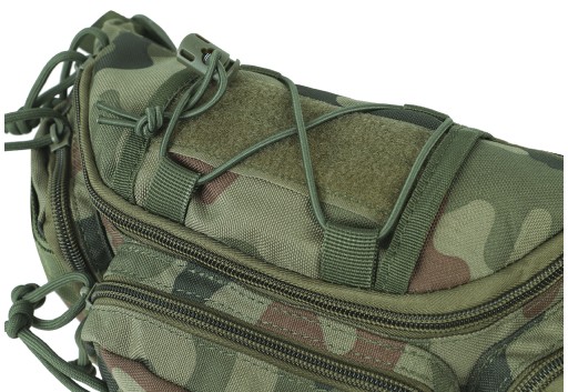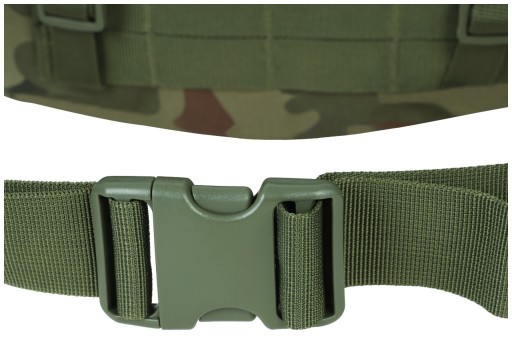Поясний рюкзак має знімний ремінь і модульну систему з боку тіла, що дозволяє кріпити його до спорядження. Завдяки знімним шлевкам його можна носити прямо на поясі або одягати на кермо велосипеда. Зручний поясний ремінь з поліестерової оплетки, м'який і дихаючий. Система швидкого регулювання довжини і міцна пряжка з ABS-пластику.