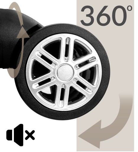 - Пропоновані валізи мають чотири безшумних поворотних колеса з гуми. Це величезна зручність, яка покращує мобільність вашого багажу.