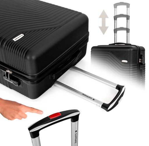 - Алюмінієва телескопічна ручка з опцією фіксації дозволяє легко і комфортно переносити валізу. У валізах Sapphire ви можете відрегулювати висоту ручки під свій зріст.