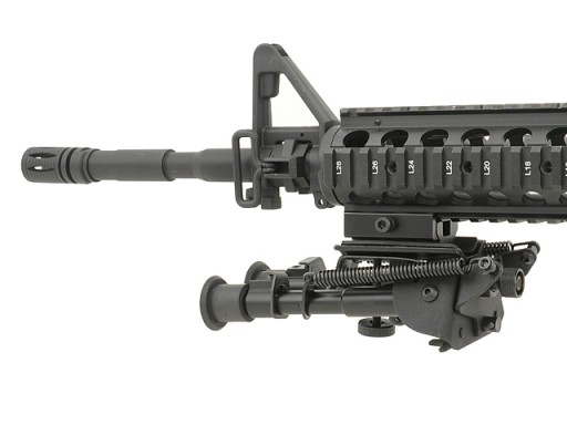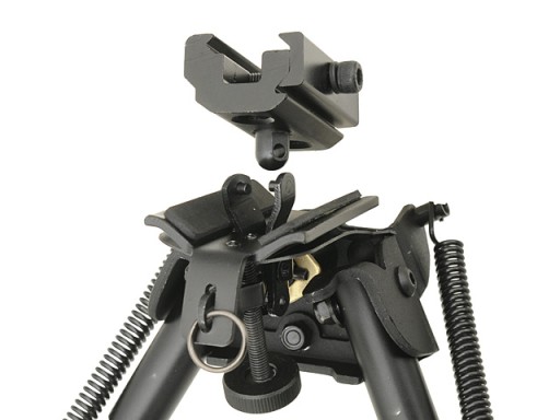 Сошка має складні ніжки з багатоступеневим регулюванням довжини. Ідеально підходить для монтажу на стандартні RIS-рейки. Сошку також можна кріпити до копій за допомогою тримача для ременя під основою (див. фото). Сошка також має функцію «люльки» вбік. Залежно від поставки конструкція може дещо відрізнятися від зображеної на фото.