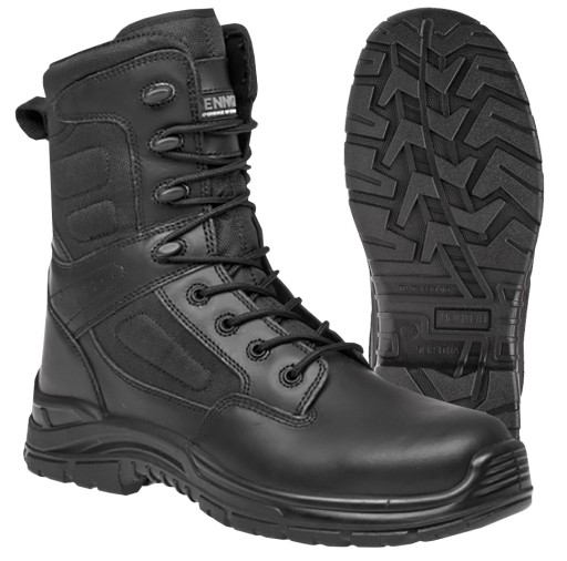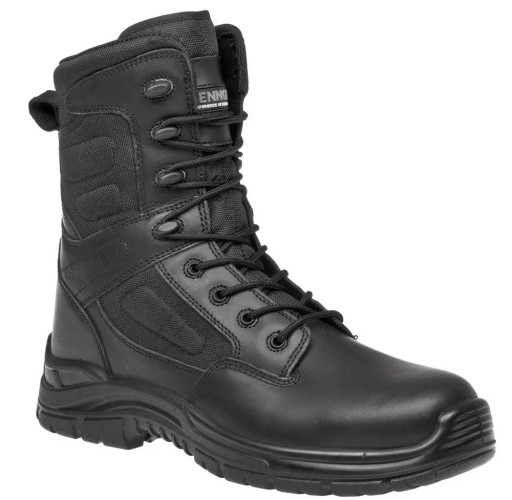 Тактичні зручні черевики без металевих елементів, призначені для використання уніформованими службами та охороною. Високоякісна шкіра забезпечує міцність і довговічність взуття, а текстиль і перфорація гарантують легкість і повітропроникність всього верху взуття. Стандарт: EN ISO 20347:2012 O1 SRC FO