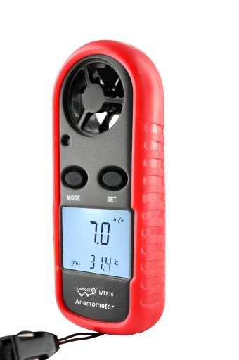 Анемометр - також званий анемометром, це прилад, який використовується для вимірювання руху газів. Наш прилад – крильчатий анемометр, назва походить від його будови, а точніше, 6-плечевого ротора, який починає обертатися за рахунок потоку газу. Оберти ротора реєструються лічильником, який потім визначає швидкість повітря. Дані, зібрані пристроєм, відображаються на РК-дисплеї в зручній формі.